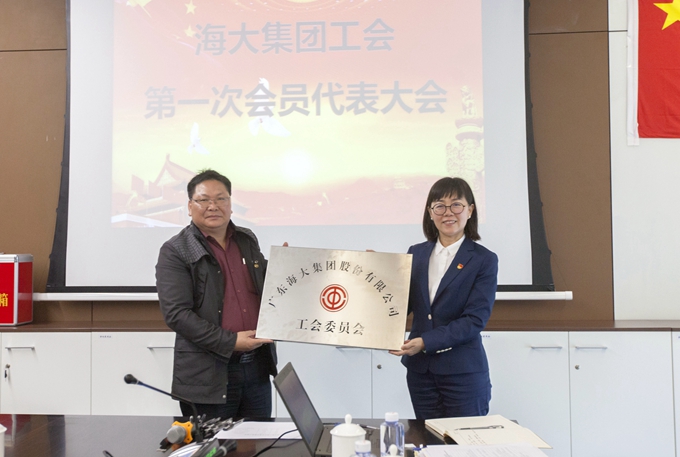 郭少華主席為集團總部成立工會(huì )委員會(huì )授牌。最后,廣東海大集團總部工會(huì )第一次會(huì )員代表大會(huì )在《國際歌》中勝利閉幕。