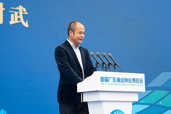 開(kāi)幕式現場(chǎng),海大集團副總裁江謝武作為企業(yè)代表登臺發(fā)言,江總表示:廣東是我國主要漁業(yè)大省,漁業(yè)以高產(chǎn)高效而聞名,水產(chǎn)養殖量全國第一,水產(chǎn)養殖技術(shù)保持全國領(lǐng)先,四大家魚(yú)、羅非魚(yú)、南美白對蝦、烏鱧、加州鱸、鱖魚(yú)等多個(gè)養殖品種引領(lǐng)國內最高發(fā)展水平,帶動(dòng)無(wú)數農民致富、農村興旺,創(chuàng )造出巨大的經(jīng)濟效益和社會(huì )效益。