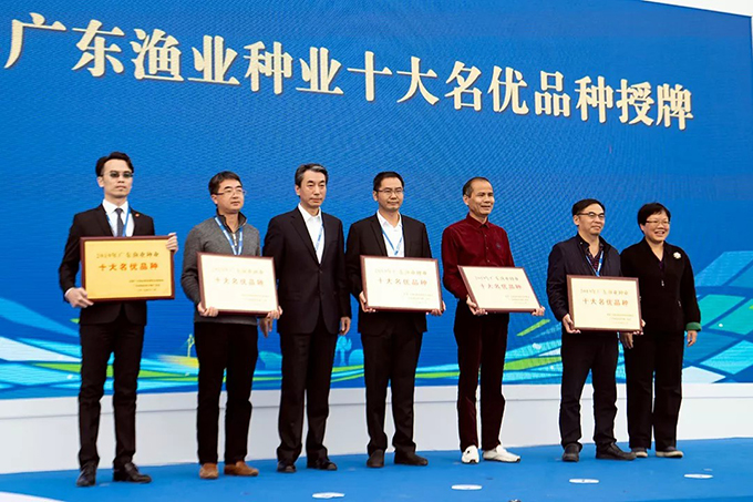 現場(chǎng),由7大專(zhuān)家組成的評審團,經(jīng)過(guò)綜合實(shí)力對比、品種展示評比、用戶(hù)評價(jià)三個(gè)環(huán)節,最終海興農2號南美白對蝦,從數十個(gè)種苗品種中脫穎而出,榮獲“2019廣東漁業(yè)種業(yè)十大名優(yōu)品種”。