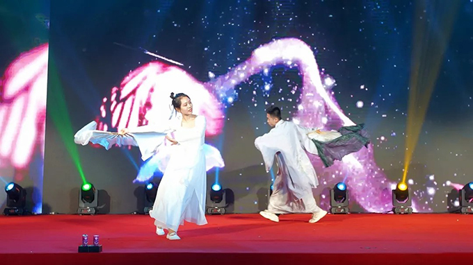 輝照華庭開(kāi)偉業(yè),龍吟神州展宏圖。晚會(huì )前,隨著(zhù)《2019年大事記》視頻的播放,全場(chǎng)共同回顧了過(guò)去一年中,海大取得的一項項新榮譽(yù)、創(chuàng )下的一個(gè)個(gè)新成果,這是屬于全體海大人的榮光。一段剛柔并濟、輕盈靈動(dòng)的開(kāi)場(chǎng)舞蹈《揚帆起航》揭開(kāi)了晚會(huì )的序幕:從一葉輕舟壯大為如今的行業(yè)巨輪,海大集團無(wú)畏險阻、無(wú)悔風(fēng)雨,一路披荊斬棘、高歌猛進(jìn)。舞蹈演員現場(chǎng)“點(diǎn)燃”火炬,臺上煙火璀璨,寓意著(zhù)海大人將燃燒激情、踏浪而行,共筑海大輝煌、做幸福海大人。