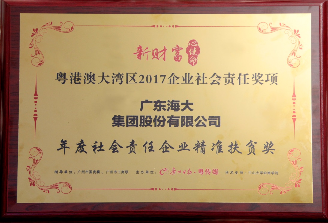 海大集團榮膺“2017年社會(huì )責任精準扶貧獎”
